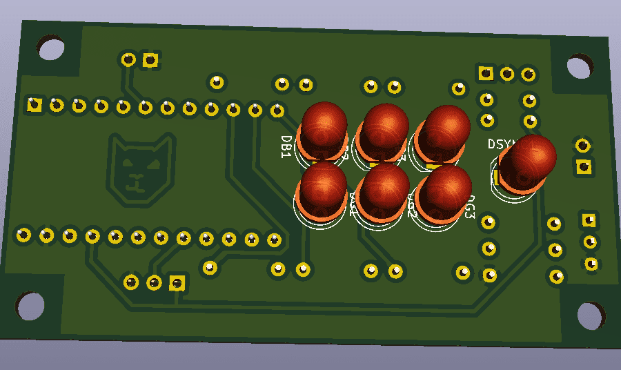 But I still didn't feel done. I decided to get a PCB printed and but it in a nice box. I followed this tutorial on KiCad to design the PCB, and ordered it to be printed by Aisler. It will cost me around 20 Euros for 3 pieces and should arrive in a week or so. And most importantly I could finally add something silly to a PCB: